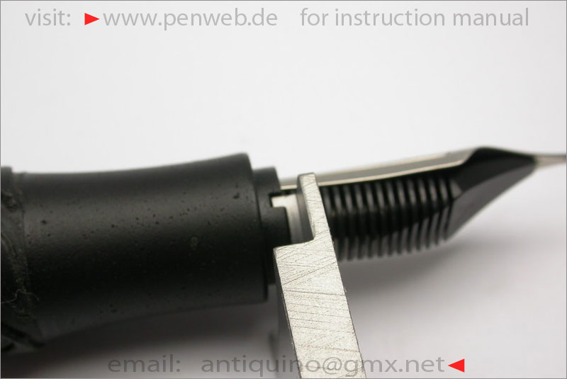 You can see the nib carrier and the two notches (slots) inside the nib unit. The slots must be exactly in 3 and 9 o`clock position. This is the original position. If the slots are not in the right position you cannot go further without damaging the nib as well as the feed!